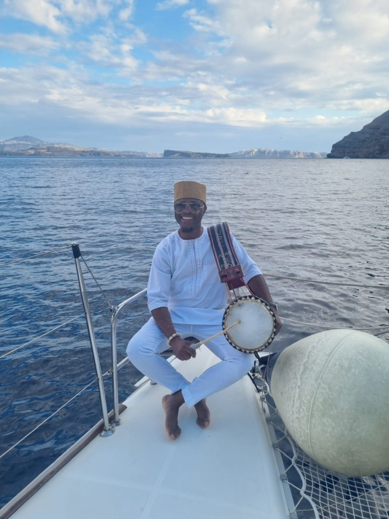 The renowned entertainer, Ayan De First recently returned from Santorini, Greece, where he recorded another feat, becoming arguably the first-ever talking drummer to perform on the Mediterranean Sea.
