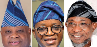 From left: Governor Ademola Adeleke, Former governor Gboyega Oyetola and Former governor Rauf Aregbesola Assessing Governor Ademola...